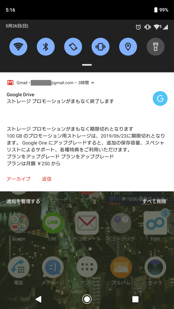 今朝、2年前に買ったChromebookのプロモーション、Googleドライブ100GB増量の特典が切れるとメールがやってきた。
