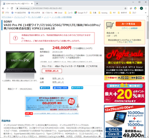 そんな中、昨年末のセールでVAIOの法人モデルが超特価で販売していたので逃す手はあるまい、と入手してしまいました。14インチモデルと少し大きいですが、重さ約1kgでLTE搭載、core-i7、メモリ16GB、PCIe接続SSDと高速仕様。解像度はフルHDだけど仕事用なので必要充分。ほぼ最高スペックで税込み16万ポッキリ。これで5年ぐらい使えればいいなぁ。