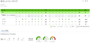 前半の最後でバーディーが2個来て39。後半も最後にバーディーが2個来て40。合わせて79。