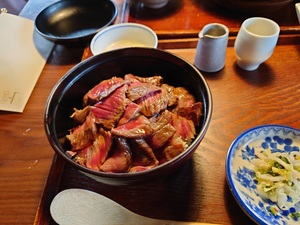 朝イチで大分空港まで飛んで、そのまま湯布院へ。湯の岳庵でお昼ご飯。寒波で雪がちらつくほど寒いので取りあえず湯豆腐で暖まる。メインは昨年と同じくローストビーフ丼。