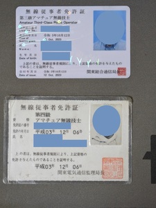 4アマ取得から32年、免許証は昔の運転免許証サイズのラミネートからホログラム付きのクレジットカードサイズになって扱いやすく財布に入れやすくなった。英訳も付くようになったが3rd-classになるのか。