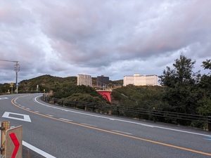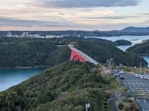 朝食もビッフェ。食べ過ぎてしまう。部屋の窓から昨日渡った橋も見える。ID-50で遊んでみる。見晴らしが良いので熊野まで届いたわ。91km。思っていたより三重は縦に長い。