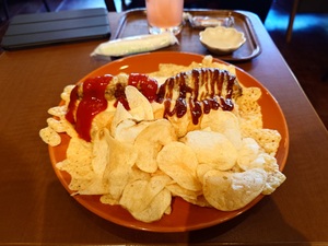 カフェMoCoにてお昼ごはん。ハンバーグ(サンド)なるものを実食。チーズドッグ系は食べるのにコツが必要でそれなりに経験を積んできたけれど、まるで歯が立たず。手を汚さずに食べれず負けたわ。