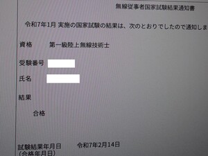 昨日の朝7時半ごろに一陸技の試験結果のお知らせメールが来る。試験結果通知書をダウンロードして無事合格であることを確認。マークミスは無かったらしい。やっと楽になった。