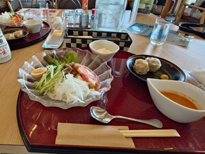 お休みいただいて、勝浦東急へ。前回はカツオの刺身定食だったが、今回は冷やし坦々で。