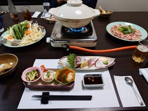 別府ゴルフクラブで前泊。今日はとり鍋。そして露天風呂。