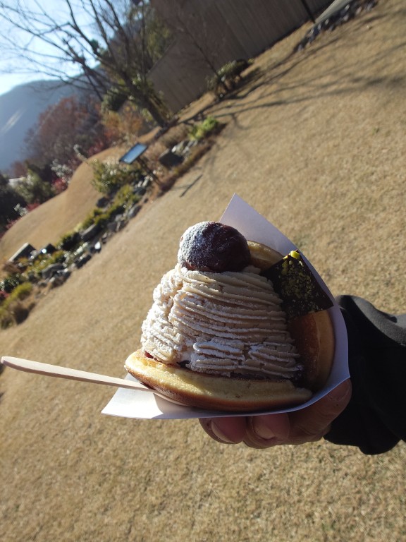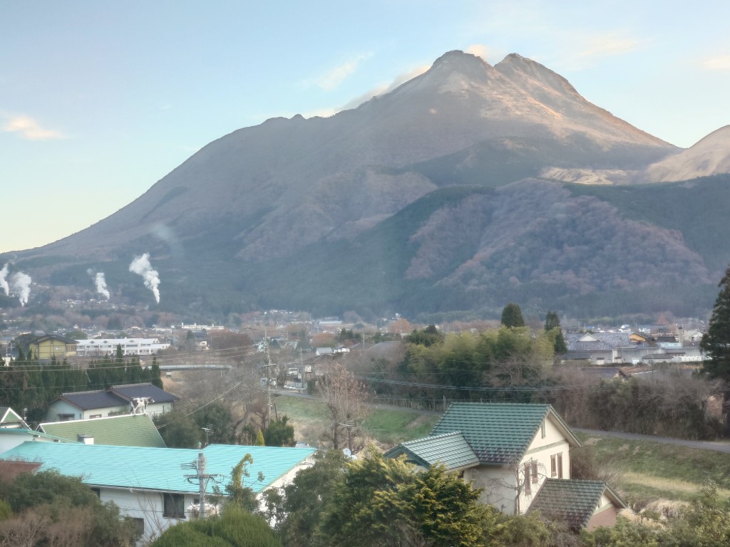 部屋から雄大な由布岳が見えるわ。鞠智まで歩いてモンブランを戴く。