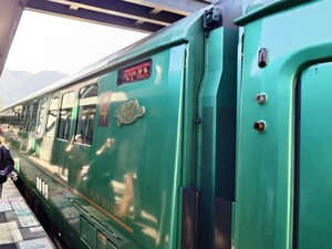 ここからは鉄道移動。由布院から博多までは「ゆふいんの森」で移動。車内で弁当。思ったより凄い揺れる。