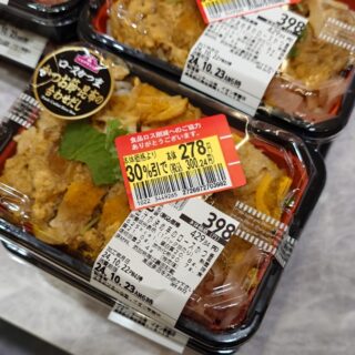 イオンで夕飯のお弁当を物色。 大が893kcalで598円。値引きなし。 小が625kcalで398円から30%引きで278円に...