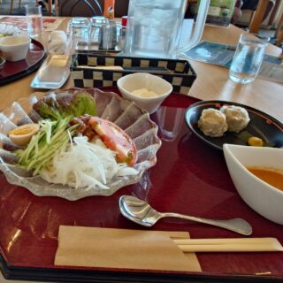 お休みいただいて、勝浦東急へ。前回はカツオの刺身定食だったが、今回は冷やし坦々で。